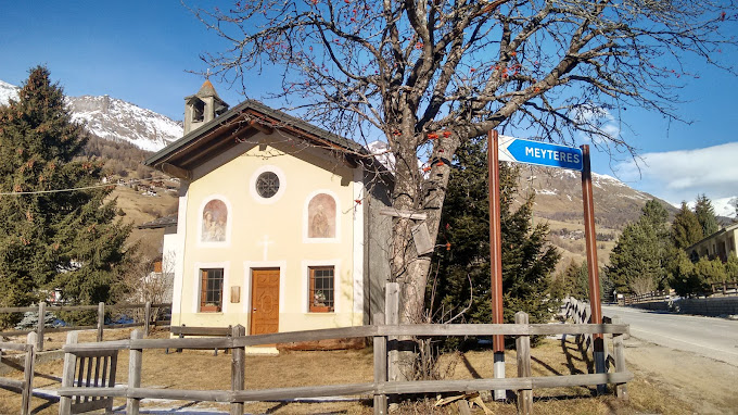 La Cappella di San Bartolomeo di trova lungo la SR45, all'entrata per Meyteres. Sono presenti due grandini all'ingresso.