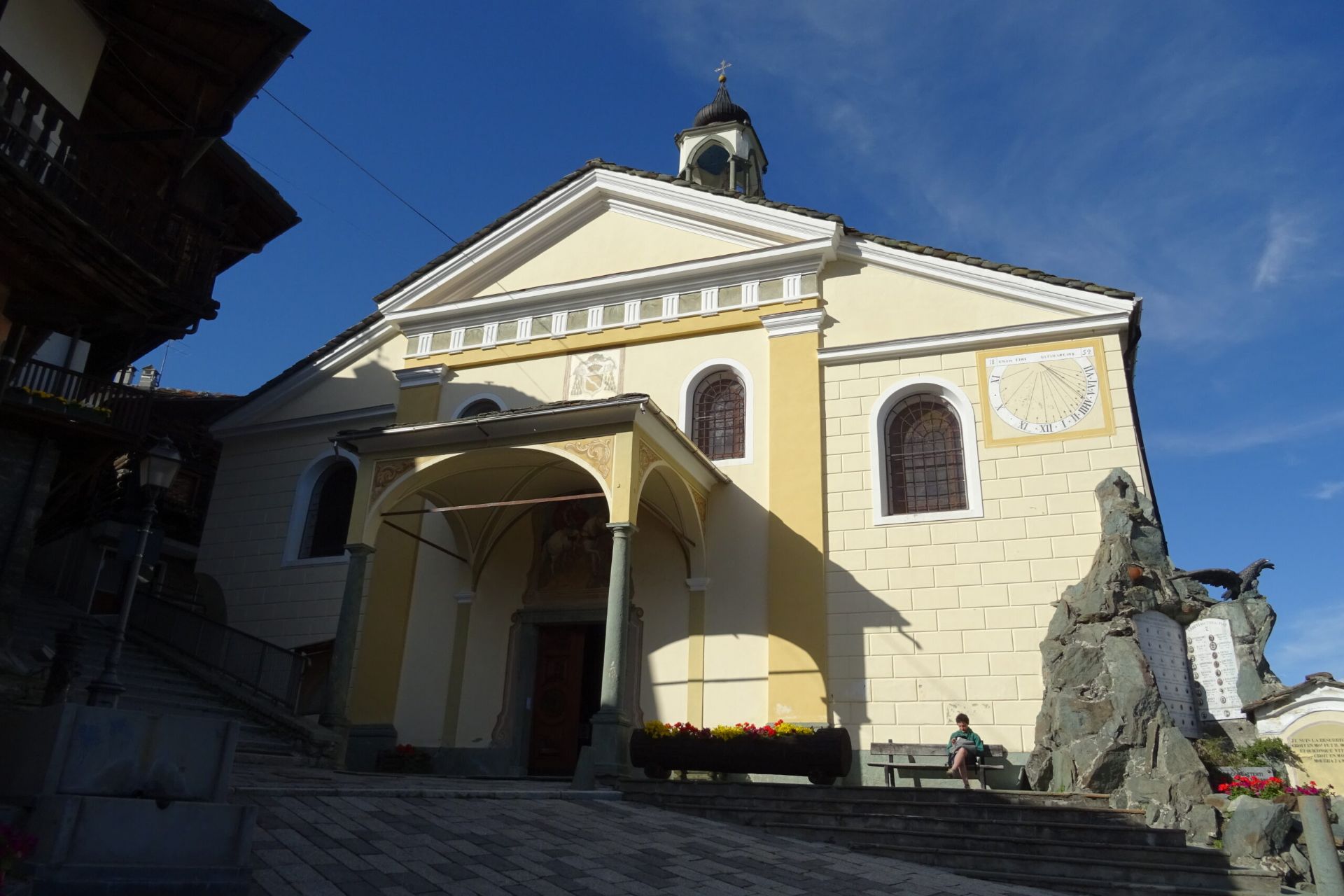 Altari laterali: a destra, a partire dall’ingresso, l’altare di S. Anselmo e quello di S. Giuseppe, del XIX sec.; l’altare della Vergine, del XVII sec., rimaneggiato nell’Ottocento, con statua della Madonna di Oropa. A sinistra, sempre dall’ingresso, l’altare di S. Antonio e l’altare del Rosario, del XIX sec.; l’altare della SS. Trinità, del XVII sec., rimaneggiato nell’Ottocento. Di quest’epoca è la tela, del pittore Curtaz di Gressoney, raffigurante la Trinità e La Sacra Famiglia.